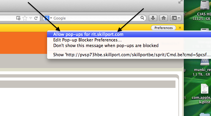 - Now choose “Allow pop-ups for rit.skillport.com“