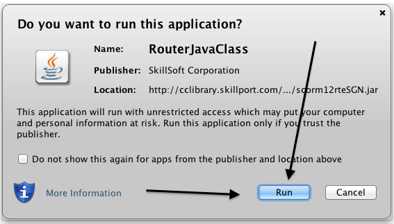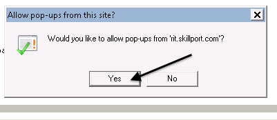 - Now you are presented with another dialog confirming to Allow the pop-ups from rit.skillport.com. Click “Yes”